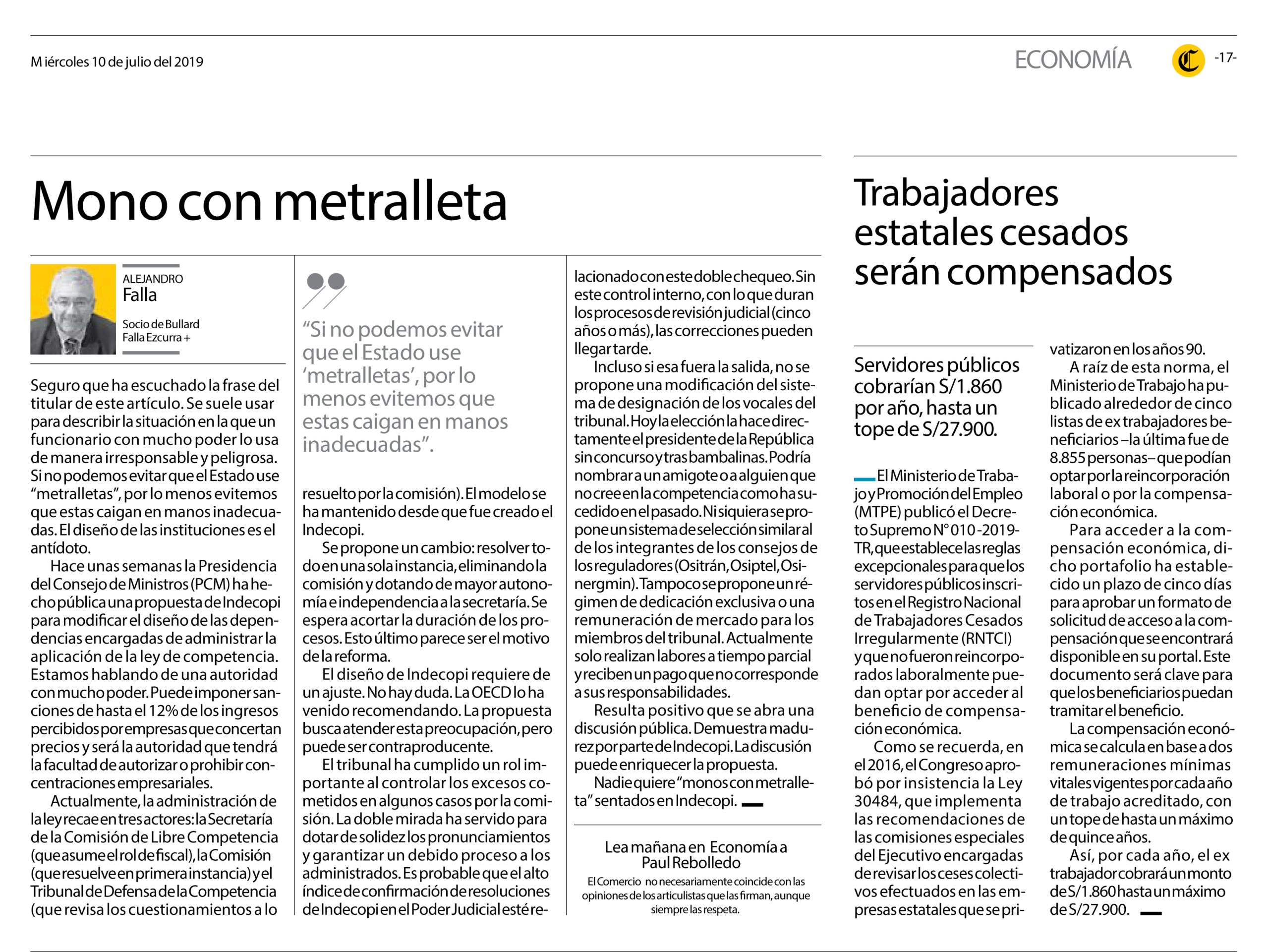 Seguro que ha escuchado la frase del titular de este artículo. Se suele usar para describir la situación en la que un funcionario con mucho poder lo usa de manera irresponsable y peligrosa. Si no podemos evitar que el Estado use “metralletas”, por lo menos evitemos que estas caigan en manos inadecuadas. El diseño de las instituciones es el antídoto.