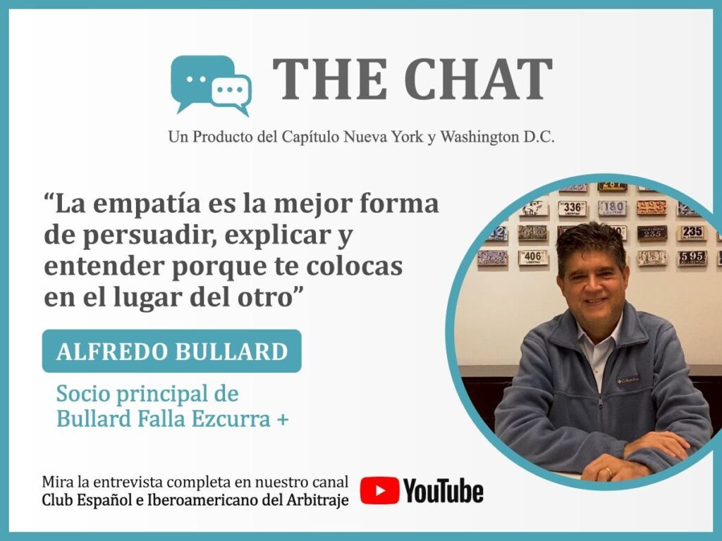 Compartimos la entrevista que el Club Español e Iberoamericano del Arbitraje le hizo a nuestro Socio, Alfredo Bullard, a través del programa «The Chat» un producto del capítulo Nueva York y Washington D.C