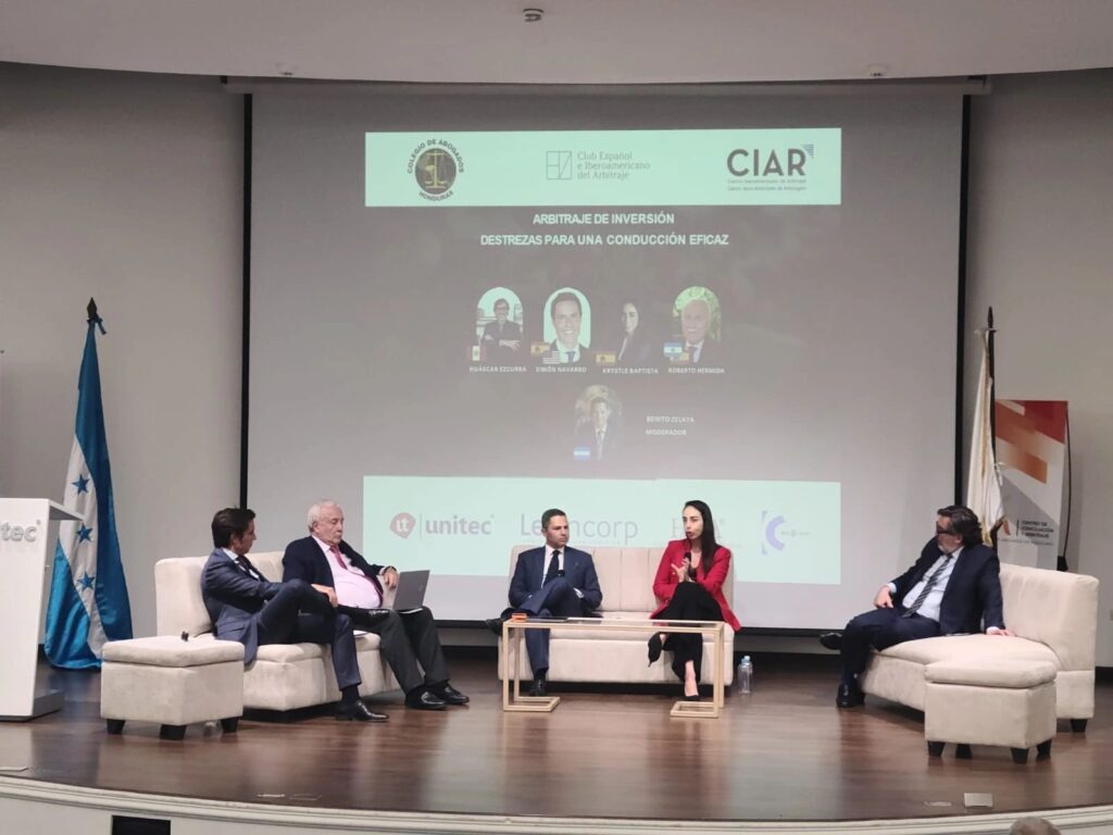 Nuestro Socio, Huascar Ezcurra, participó como panelista en dos mesas redondas con ocasión del I Simposio de Arbitraje Internacional organizado por el Colegio de Abogados de Honduras, Club Español e Iberoamericano del Arbitraje y el Centro Iberoamericano de Arbitraje, CIAR.