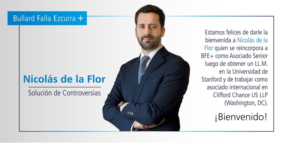 Estamos felices de darle la bienvenida a Nicolás de la Flor quien se reincorpora a BFE+ como Asociado Senior luego de obtener un LL.M. en la Universidad de Stanford y de trabajar como asociado internacional en Clifford Chance US LLP (Washington, DC).