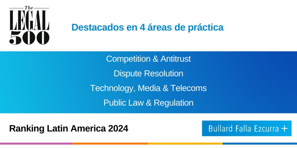 Lo anterior ha sido reconocido por Chambers & Partners, donde estamos clasificados en la primera categoría (Banda 1) de litigio arbitral, derecho de competencia, regulación y telecomunicaciones.