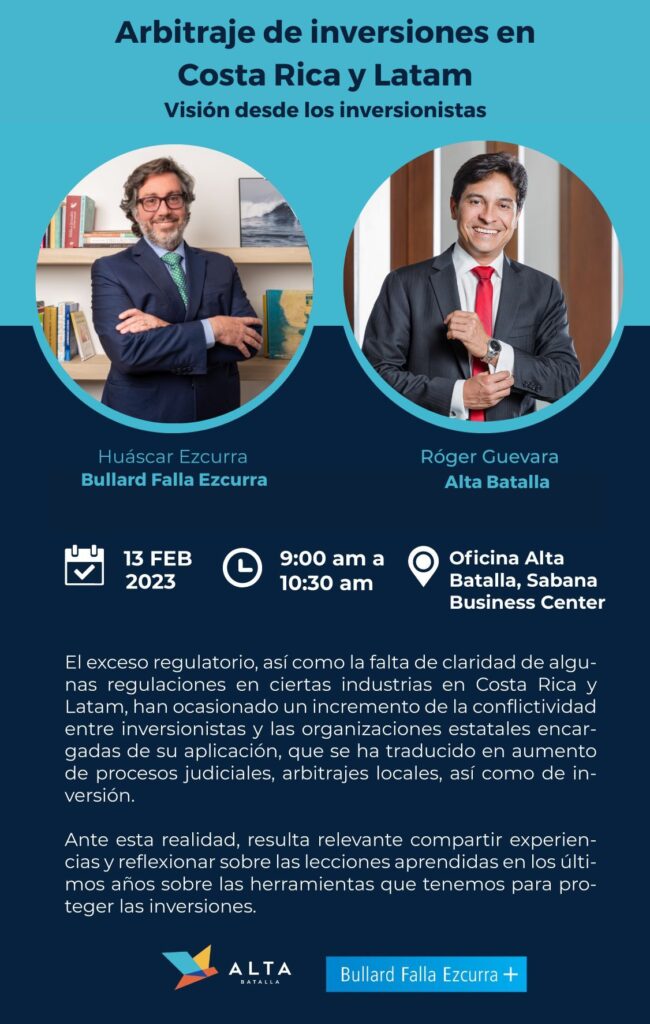 Evento: Desayuno “Arbitraje de inversiones en Costa Rica y Latam: Visión desde los inversionistas”