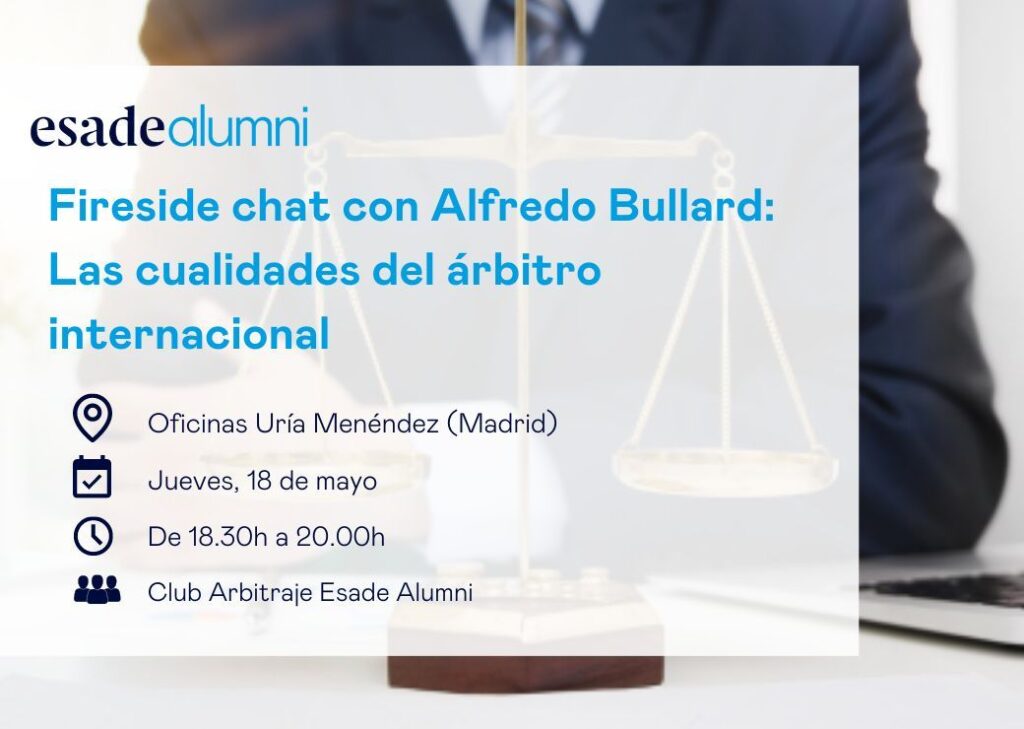 Madrid I El pasado jueves 18 de mayo, Alfredo Bullard participó del Fireside chat «Las cualidades del árbitro internacional», organizado por el Club de Arbitraje de Esade Alumni.