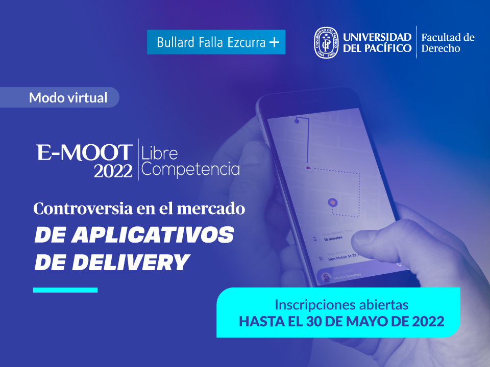 Hasta el 30 de mayo de 2022, están abiertas las inscripciones para el E-MOOT 2022 | Libre competencia, modalidad virtual, respecto a la controversia en el mercado de aplicativos de delivery, organizado por Bullard Falla Ezcurra + y la Facultad de Derecho de la Universidad del Pacífico.