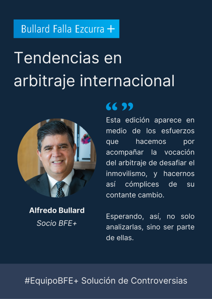 Esta edición aparece en medio de los esfuerzos que hacemos por acompañar la vocación del arbitraje de desafiar el inmovilismo, y hacernos así cómplices de su contante cambio. Nuestra intención es ser parte de esa “tendencia” en el arbitraje a no quedarse parado. Esperando, así, no solo analizarlas, sino ser parte de ellas.