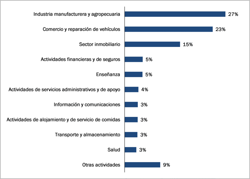 Nota: Industria manufacturera y agropecuaria agrupa los sectores “industrias manufactureras” y “agricultura, ganadería, silvicultura y pesca”. Sector inmobiliario agrupa los sectores “actividades inmobiliarias” y “construcción”