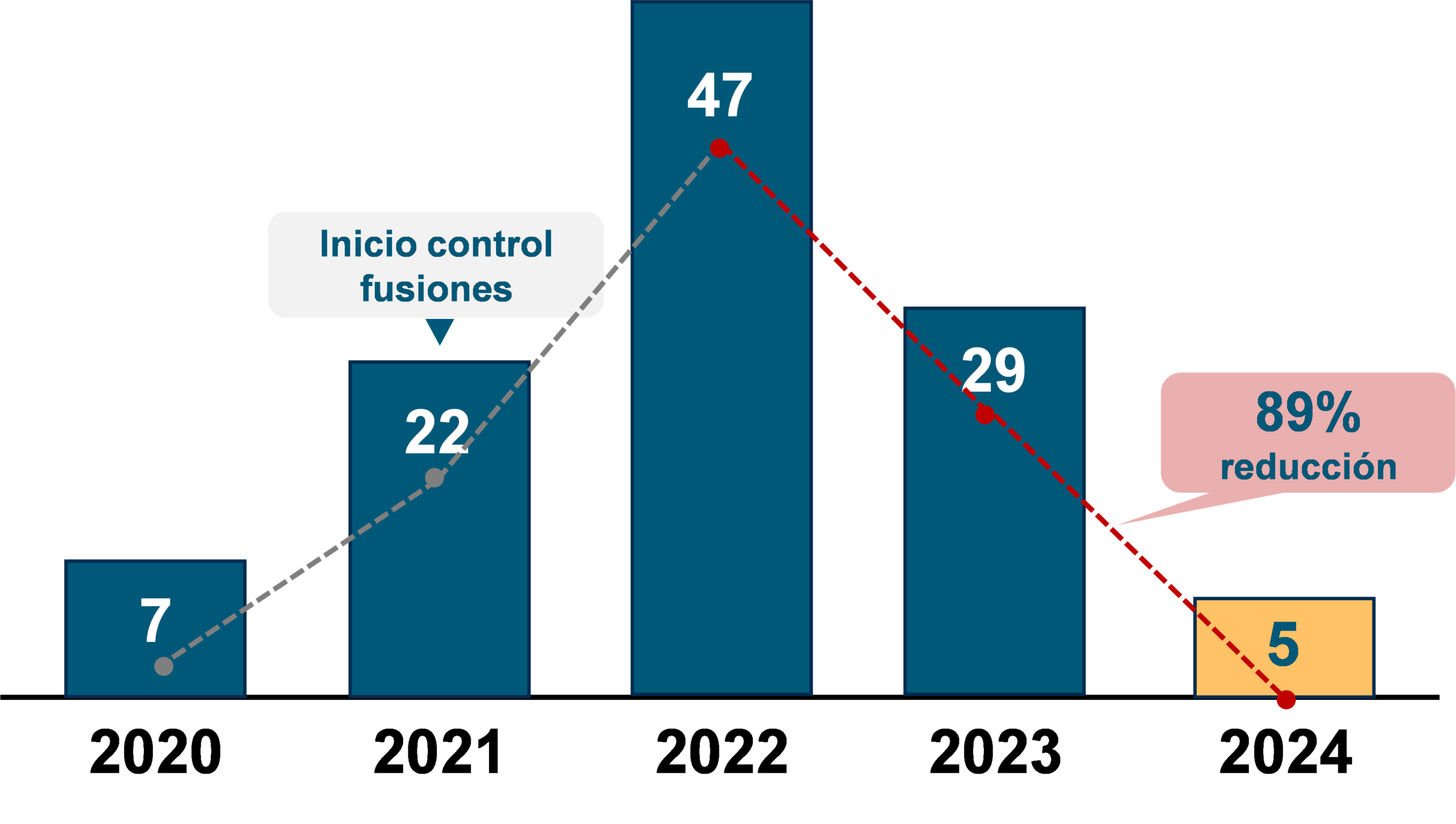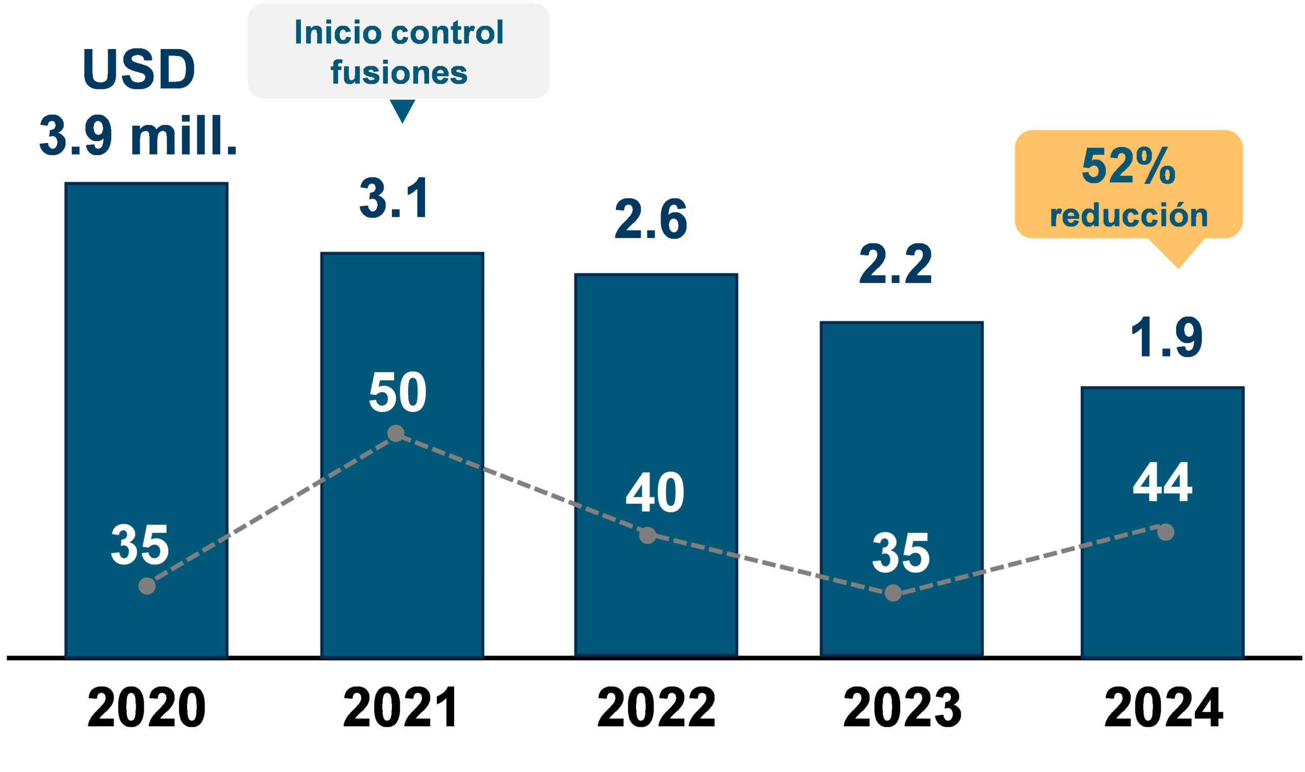 Las consecuencias de esta menor dotación de recursos ya son visibles en el desempeño de la entidad. En el mismo periodo, se observa una reducción significativa en la atención de conductas anticompetitivas, reflejada, entre otros indicadores, en la disminución año a año del número de dawn raids o inspecciones sorpresivas realizadas por la autoridad.
